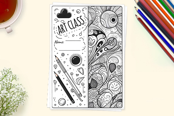 Kreativer Malspaß: Diese Vorlage lädt zum individuellen Ausmalen ein – verwandle dein Deckblatt in ein persönliches Kunstwerk voller lebendiger Farben.
