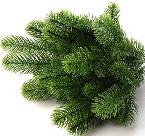 3. Jetzt habe ich die Deko-Tannenbäume mithilfe der Heißklebepistole befestigt und anschließend die Tannenzweige drum her rum verteilt. Für die Tannenzweige können auch ganz gut eigene aus dem Garten verwendet werden.