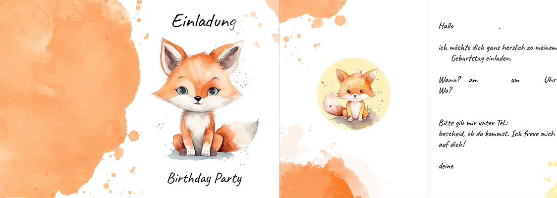 Wenn ihr Variante 1 „Karte zum Falten“ wählt, könnt ihr sie einfach wie gewohnt ausdrucken und ausschneiden. Danach faltet ihr sie entlang der ersten Kante und anschließend entlang der zweiten Kante. Wenn gewünscht, könnt ihr die Faltkarte auch an der nicht bedruckten Seite zusammenkleben. So erhaltet ihr eine schöne und ansprechende Einladungskarte für den Kindergeburtstag.