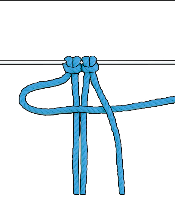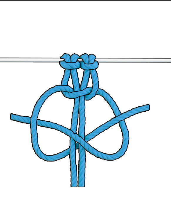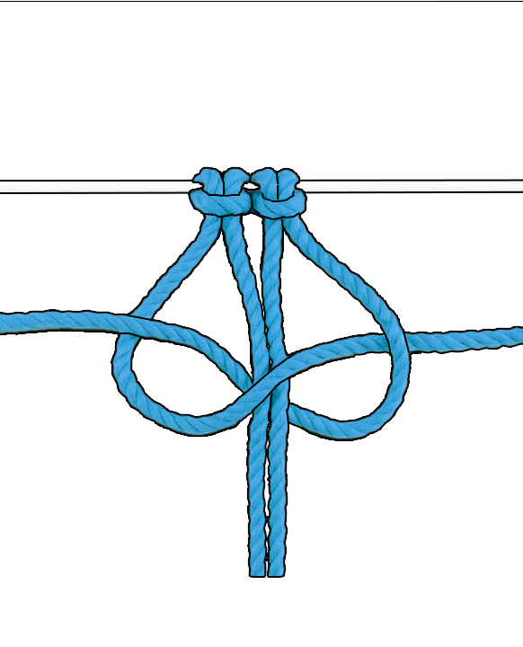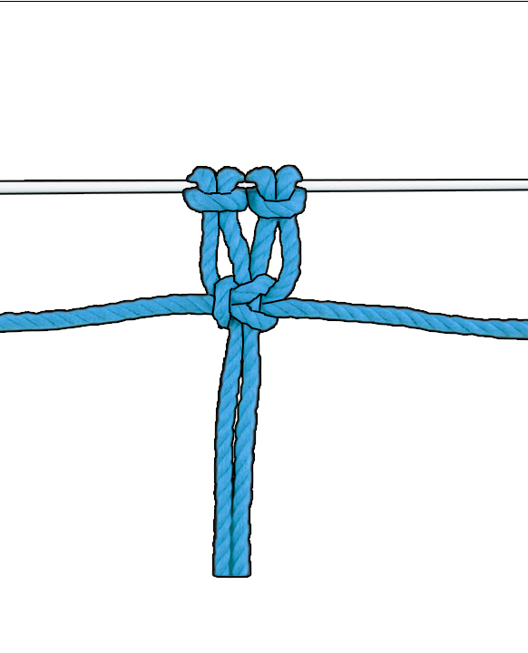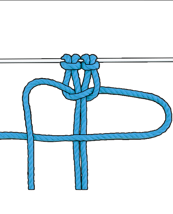 Wiederholen: Wiederhole diese zwei halben Kreuzknoten, bis du die gewünschte Länge erreicht hast.