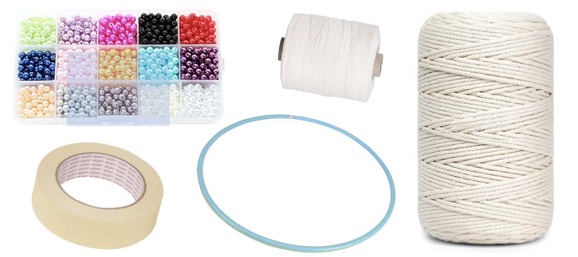 Tipp: Wer das Netz ein wenig verzieren möchte, kann zwischendurch immer mal wieder Perlen auf die Schnur auffädeln.